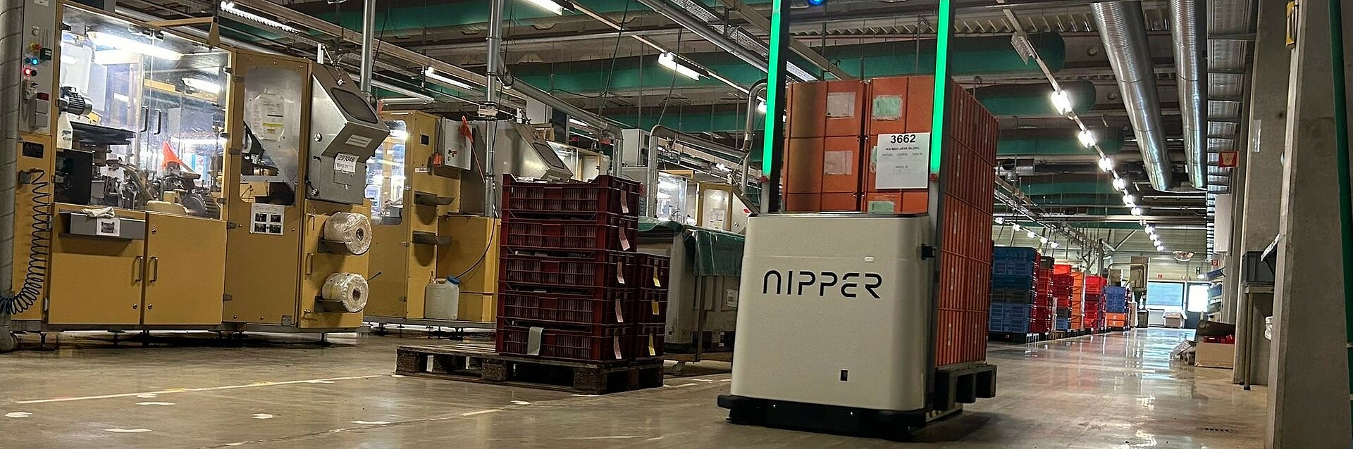 - Hall 3 to Hall 4 transport: One Nipper moves magazines containing molding caps between halls, eliminating repetitive manual trips.