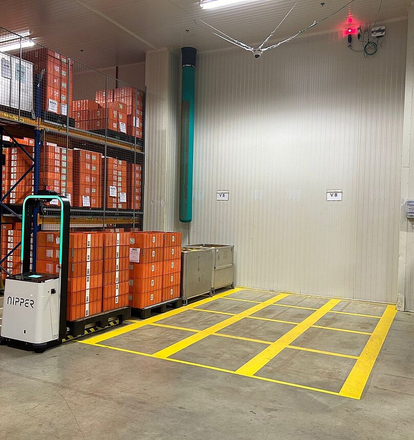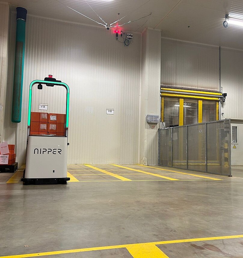 To address STG's challenges, Nipper deployed its 4th generation autonomous mobile robots (AMRs) integrated with the AI-based ConnectedThinks® orchestrator solution from Locixx. This cutting-edge system leveraged strategically placed AI-powered vision cameras to monitor product pickup and drop-off areas. The cameras provided real-time footage, which was processed by AI algorithms to detect objects and send precise location data to the Nipper Fleet Manager. This fully automated system allowed for seamless task execution without human intervention, ensuring smooth operations.
